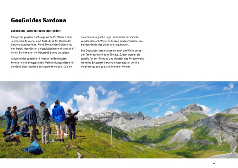 Aufgrund der speziellen Situation im Berichtsjahr konnten nicht alle geplanten Weiterbildungsanlässe für die GeoGuides Sardona durchgeführt werden. Da sich